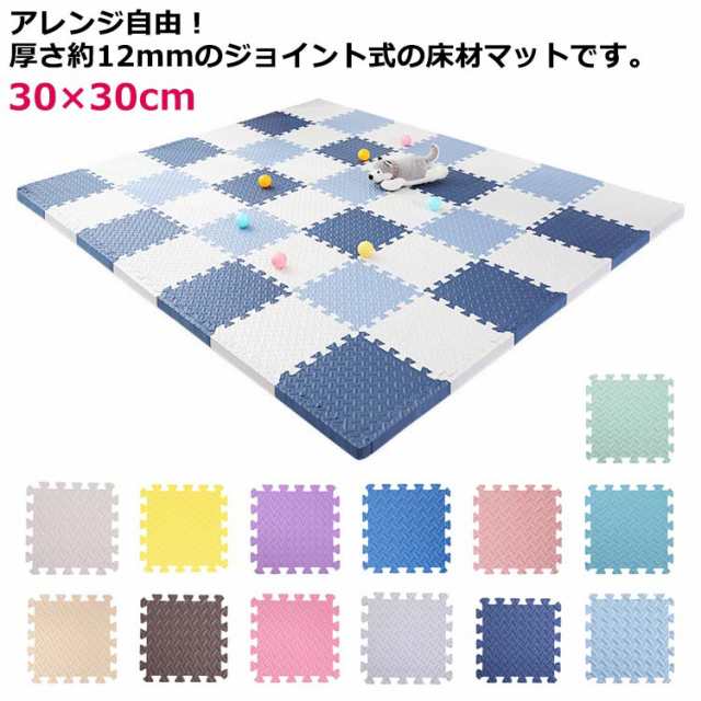 カラーマット キズ防止 30×30cm プレイマット キッズ 保育園 フロアマット ジョイントマット 12枚組 ベビーマット 拭ける 防音 赤ちゃん クッションマット マット カーペット 厚さ1.2cm
