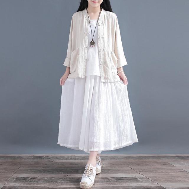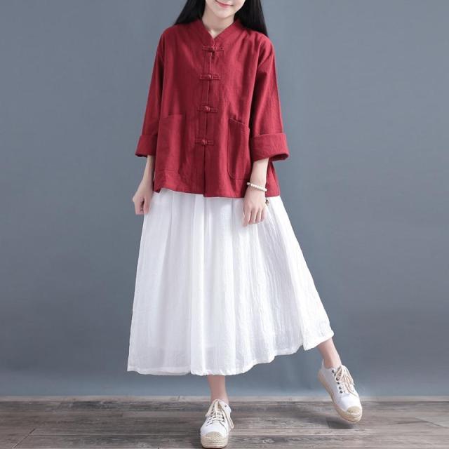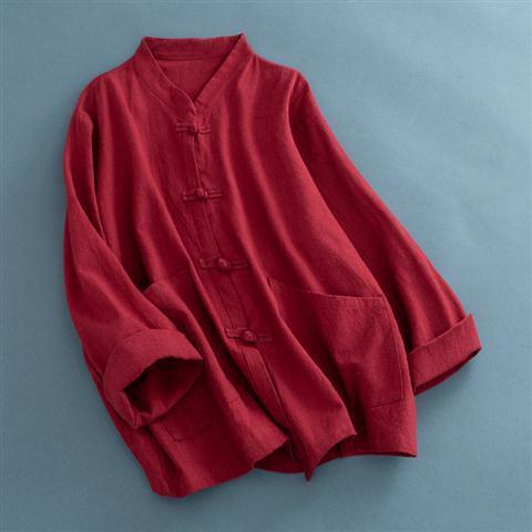 送料無料 シャツ 羽織り レディース トップス ブラウス 七分袖 長そで チャイナボタン 羽織り シャツ カーディガン 薄手 綿混 コットン混 ゆったり 夏