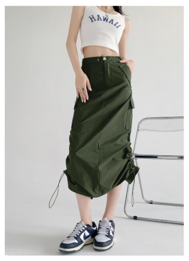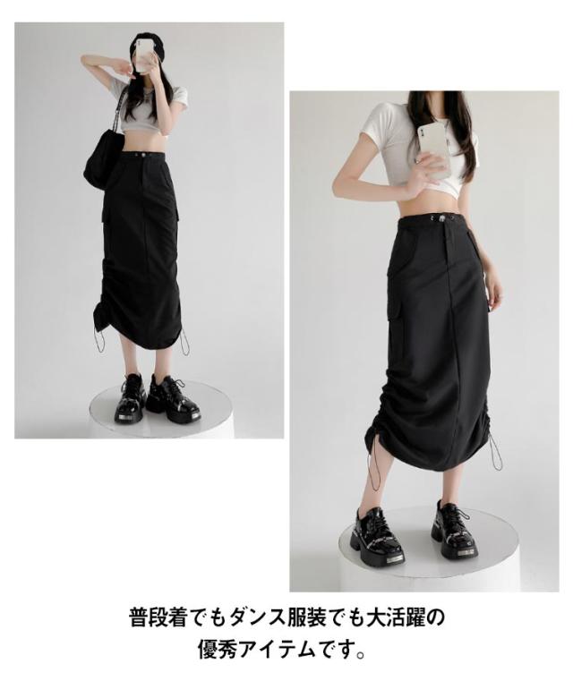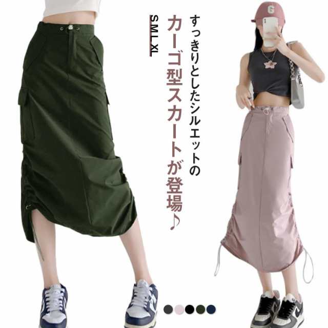 レディース カーゴスカート ダンス衣装 カッコいい おしゃれ ロング丈 ロングスカート オールシーズン 体型カバー ギフト 春秋 ロングスカート 着?せ 美脚 シンプル ミリタリー スリット入り ロングスカート ミリタリー カジュアル おしゃれ ひざ下