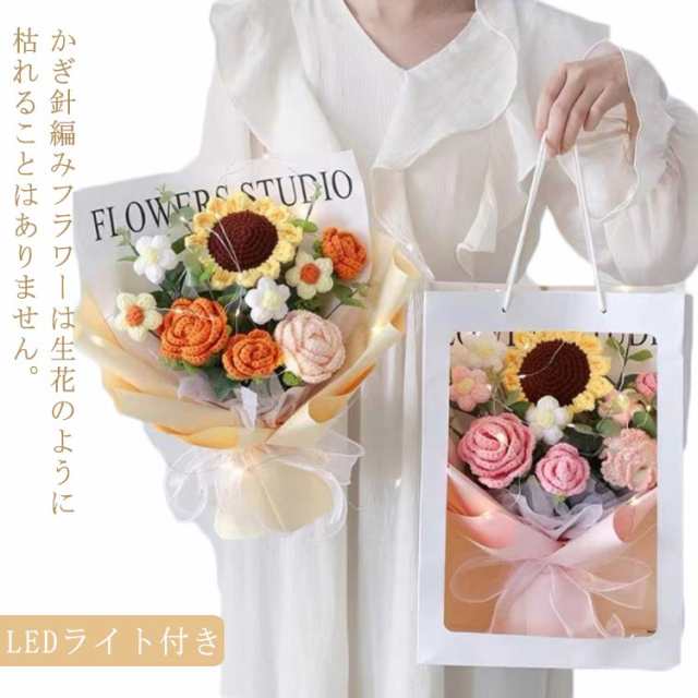 入学 新生活 かぎ針編み 女性 ぬいぐるみ花束 引越し カラフル ローズ 卒業 編み物 お祝い 敬老の日 造花 完成品 バラ 花束 ひまわり 誕生日 プレゼント デート用 彼女 枯れない花 発表会 結婚式 LEDライト付き