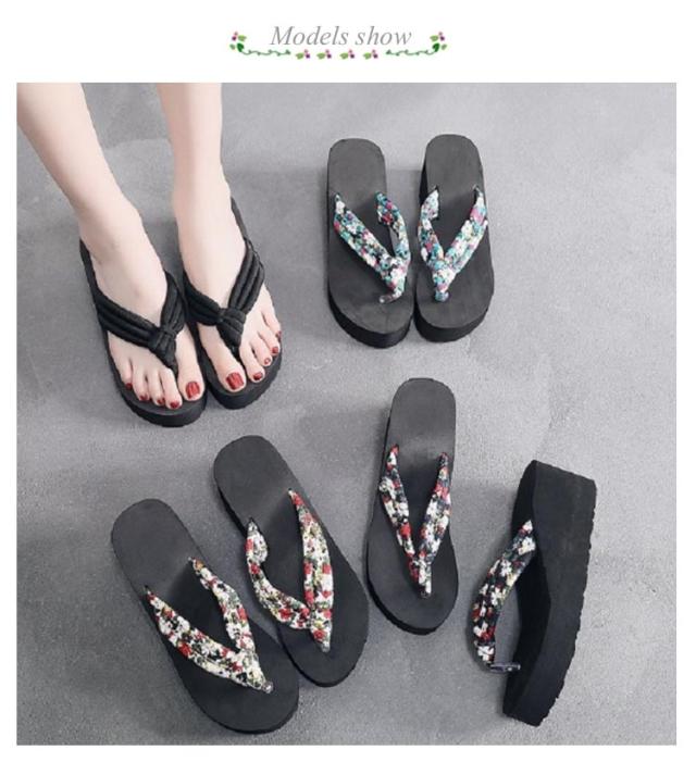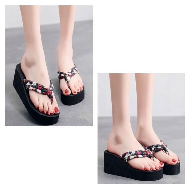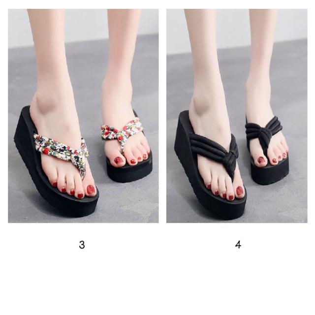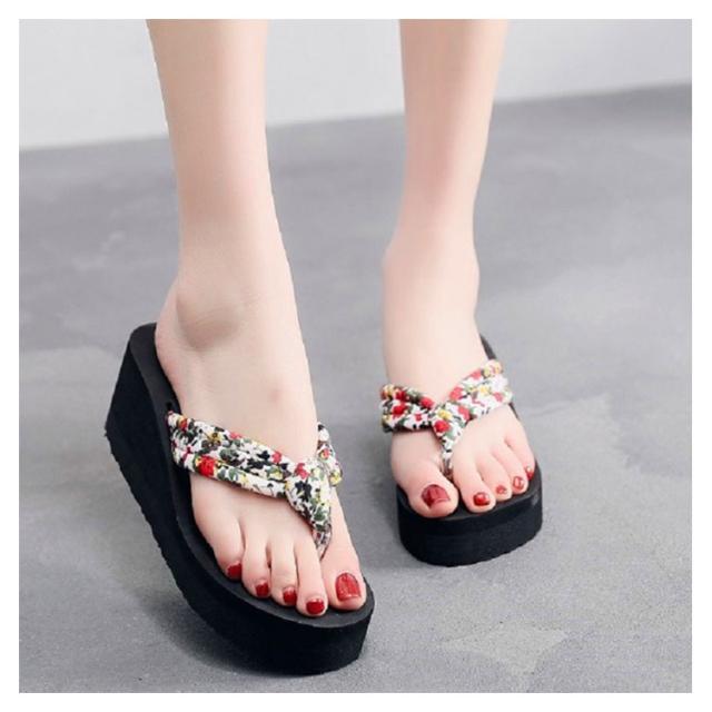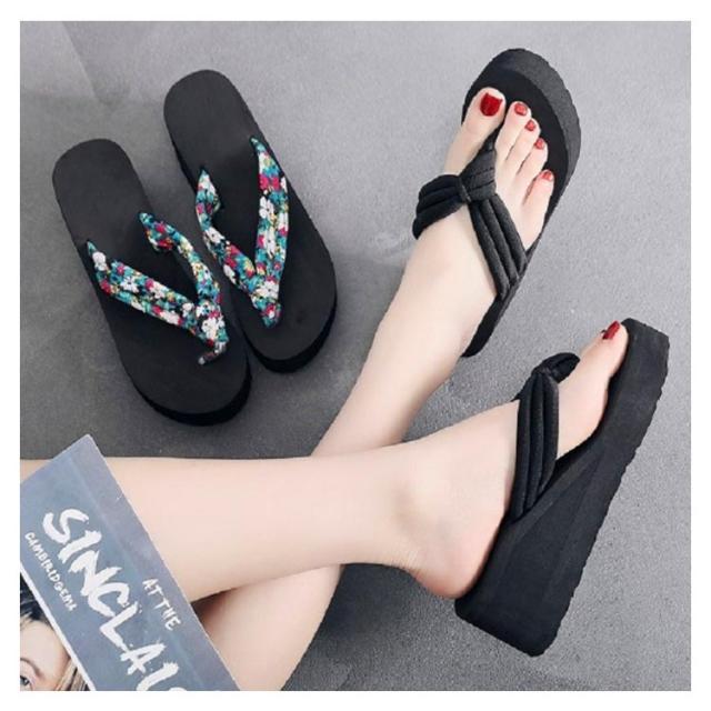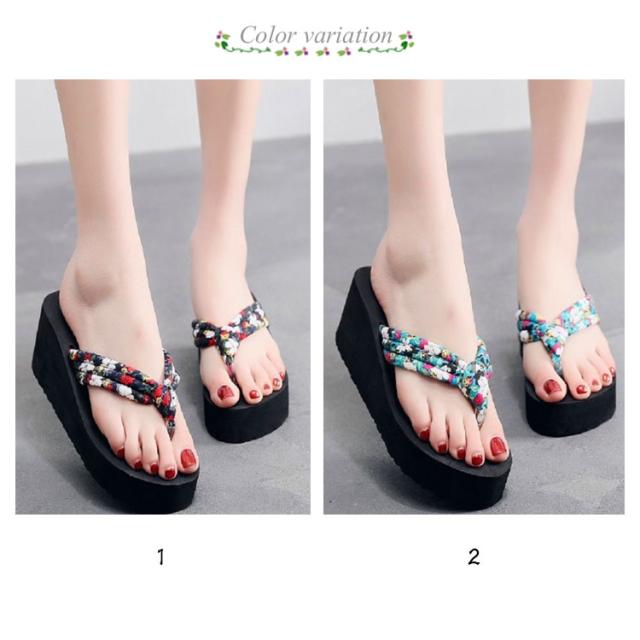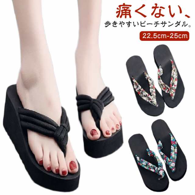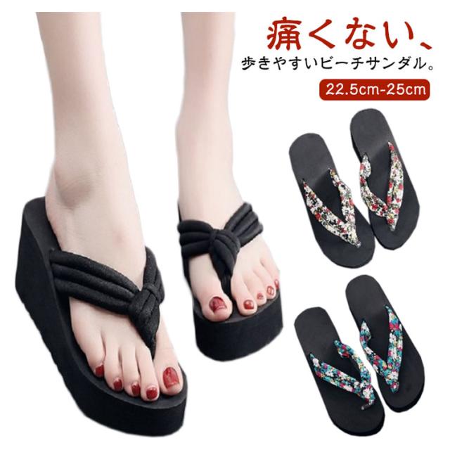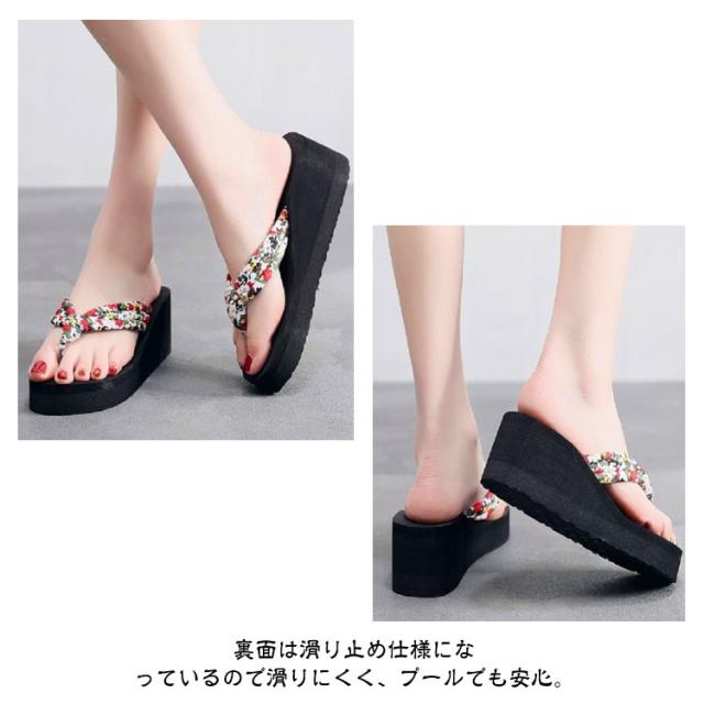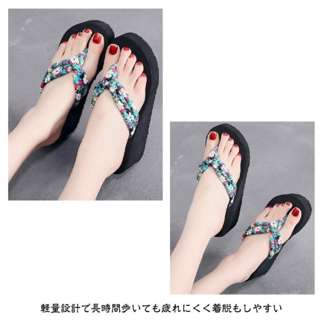 レディース トングサンダル 6.5cmヒール 浴衣 サンダル 痛くない 可愛い ビーサン 下駄 旅行 ウェッジソール 痛くない 厚底 軽い レジャー用 花柄 タウン用 軽量 滑り止め 夏用 美脚 ビーサン 海 温泉 ビーチサンダル