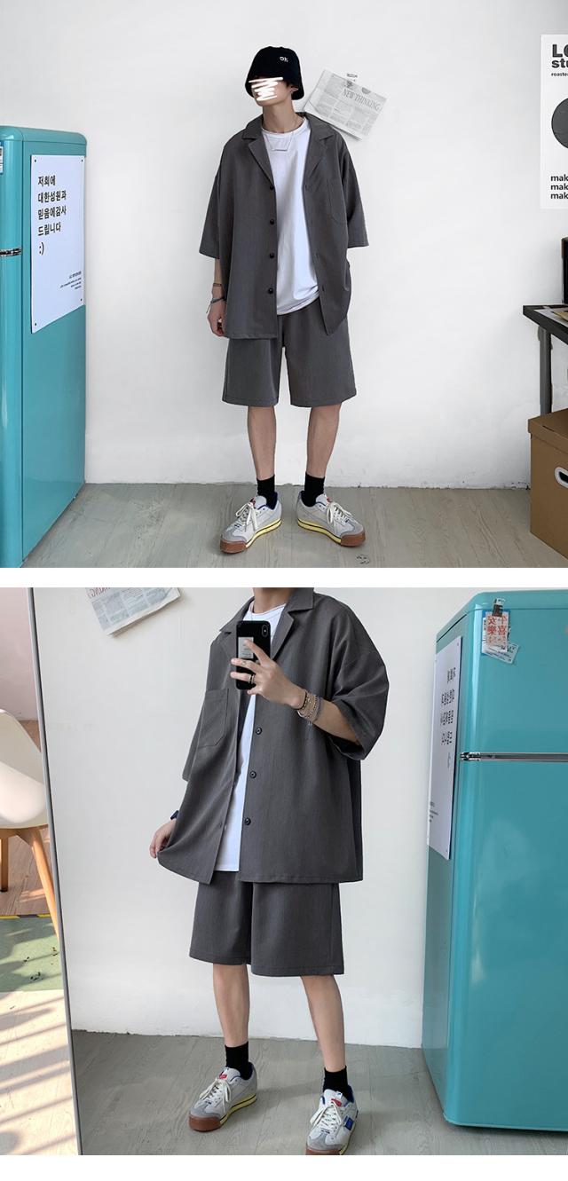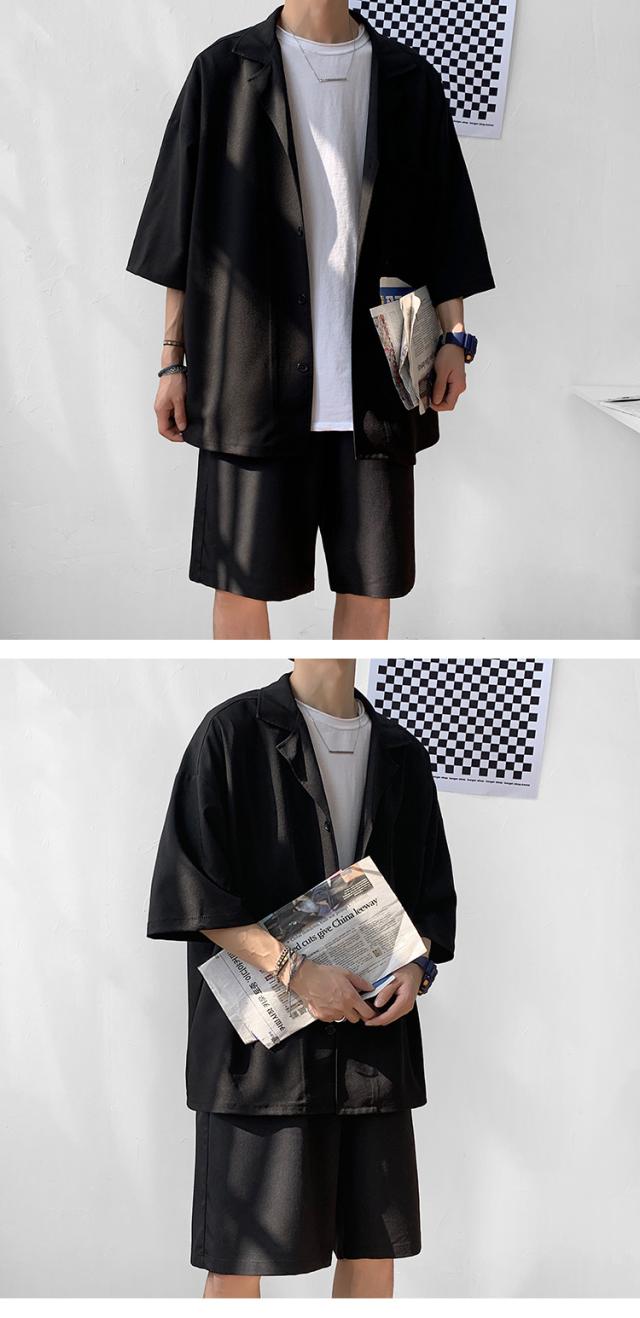 セットアップ メンズ ジャージ 夏物 7分袖 前開き トップス ショートパンツ 上下セット ストリート系 部屋着 トレーニング スポーツ 大きいサイズ カジュアル