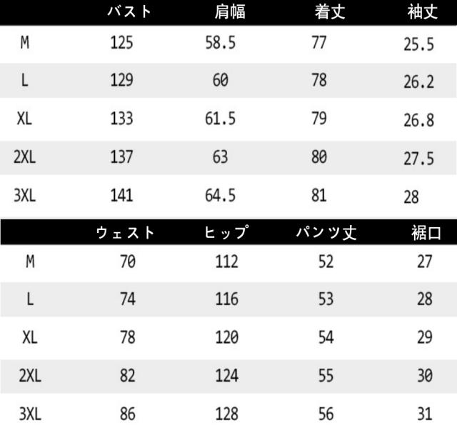 | サイズについての説明 | M L XL 2XL 3XL ※サイズ表の実寸法は商品によって1-3cm程度の誤差がある場合がございます。 |
