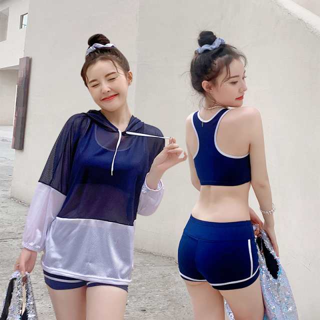 送料無料 水着 レディース 体型カバー 露出控え 中学生 高校生 大学生 韓国 水着セット フィットネス 水着 スポーティー 3点セット セパレート タンキニ タンク ショートパンツ