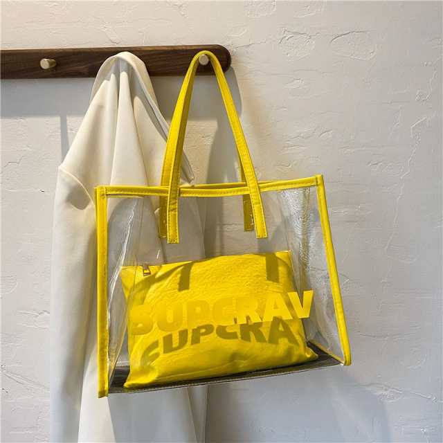 クリアトートバッグ プールバッグ 中学生 透明バッグ レディース ビニールバッグ 水着バッグ ハンドバッグ おしゃれ 夏 透明 スイミング 水泳バッグ 防水バッグ ビーチ 水遊び オレンジ PVC
