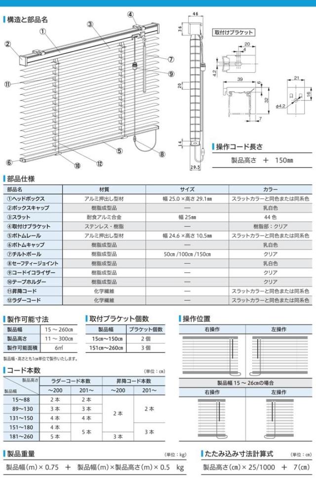 | オリジナルアルミブラインド耐水タイプ フッ素コート サイズ | |||||||||||
