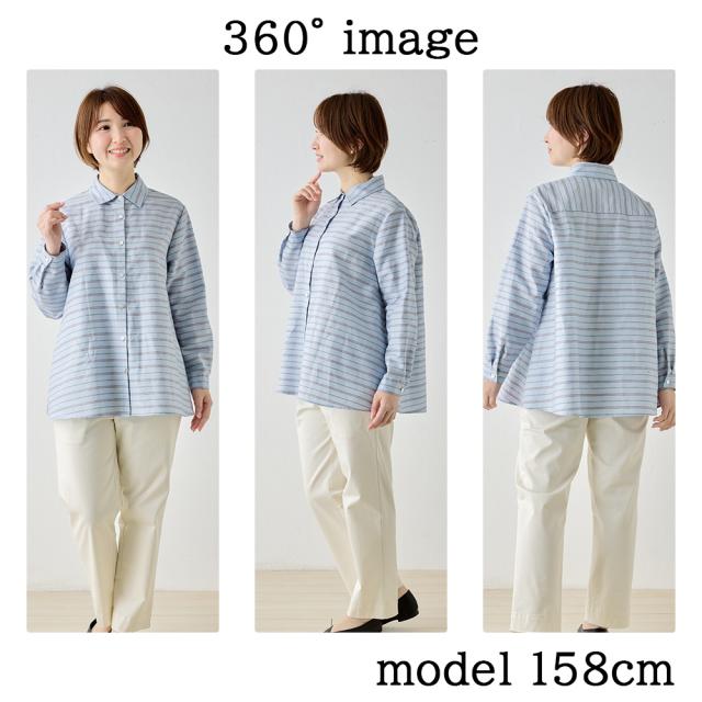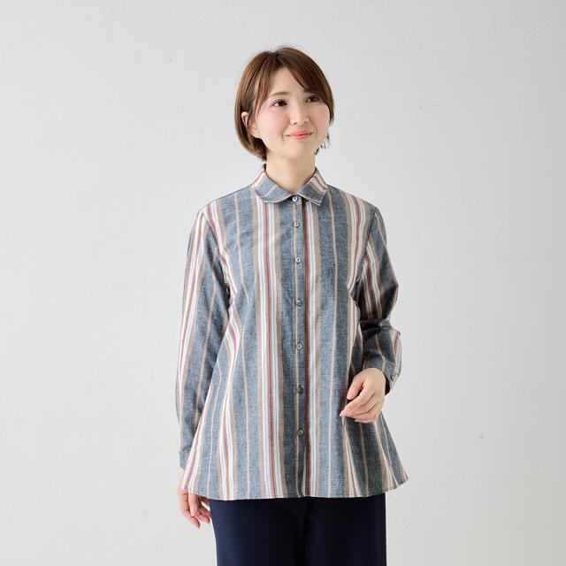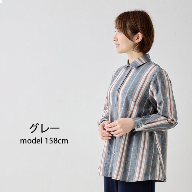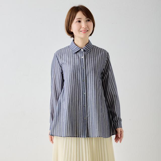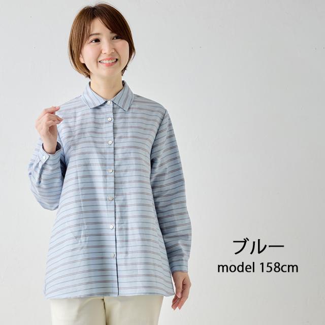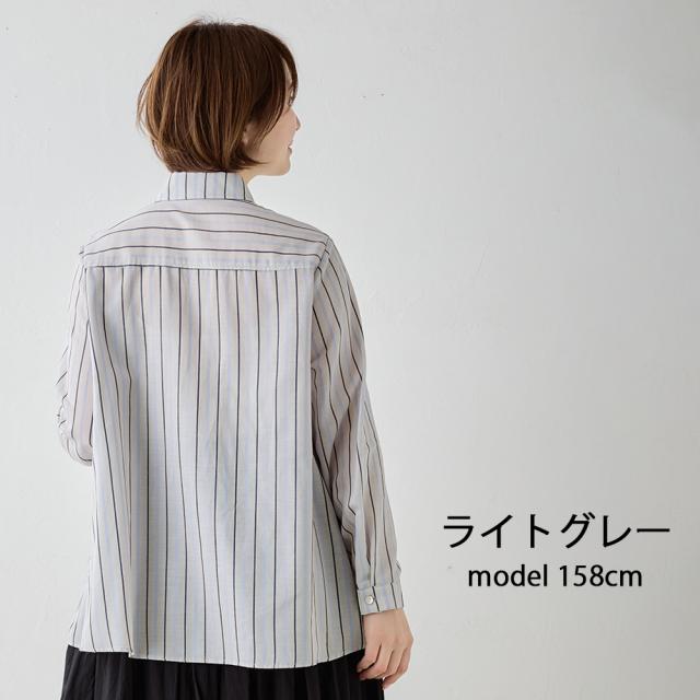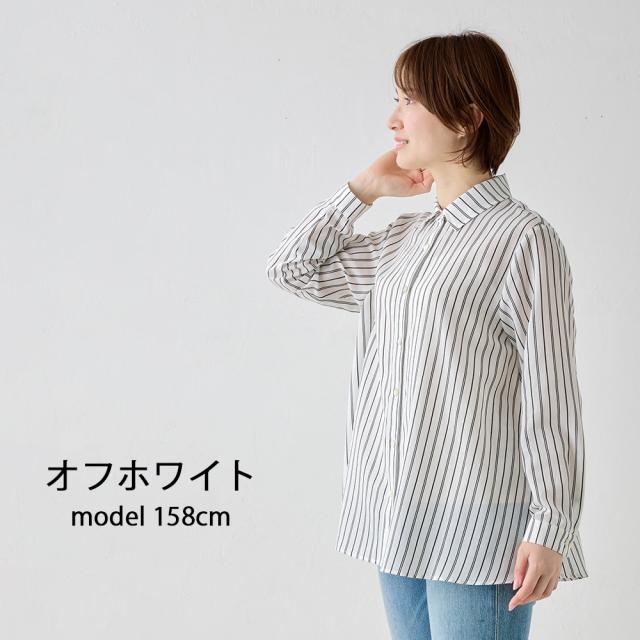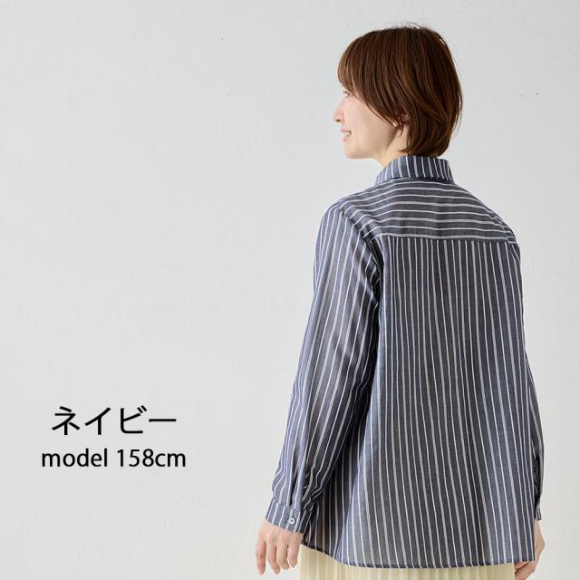 【限定品】日本製 ブラウス ストライプ 長袖 レディース 綿100% 春 夏 秋 トップス レディース 女性 襟付き カジュアル さらさら 薄手 女性カジュアル オフホワイト ネイビー ブルー グレー ライトグレー 白 紺 青