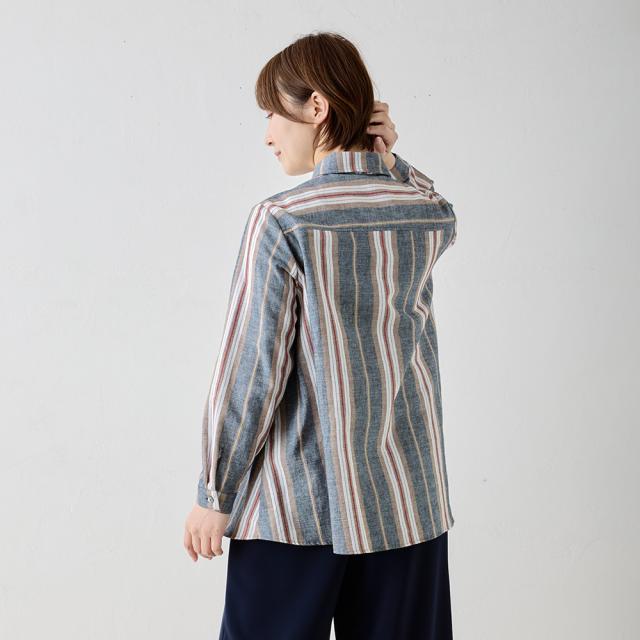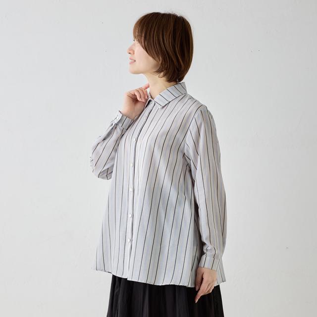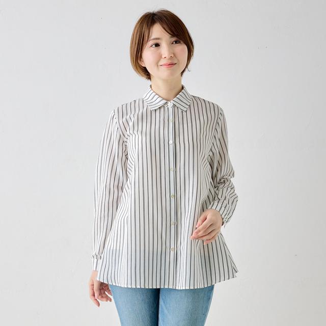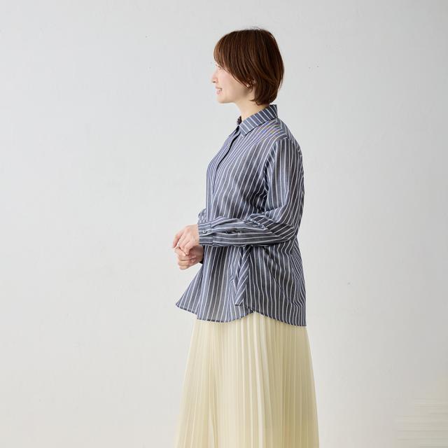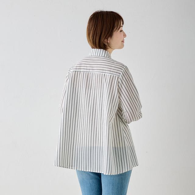 | 商品詳細 | 縦のラインが美しいストライプ柄は、シンプルな装いに洗練されたアクセントをプラス。柄の存在感がありながらも主張しすぎず、場面を問わず着こなせる万能ブラウスです。 |