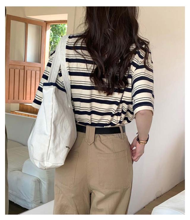 | レトロ感たっぷりのボーダーTシャツ 胸元にあしらわれたワンポイント刺繍が、さりげない可愛さを演出します。 肌にやさしいコットン素材で、夏でもさらりと心地よい着心地。 全体的にゆったりとしたルーズシルエットで、体型カバーもばっちり。 デニムやチノパン、ロングスカートなど、カジュアルコーデに大活躍の一枚です。 ナチュラルでラフに着こなせる、大人女子のためのTシャツです。 | |