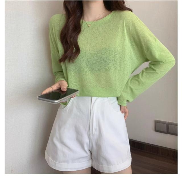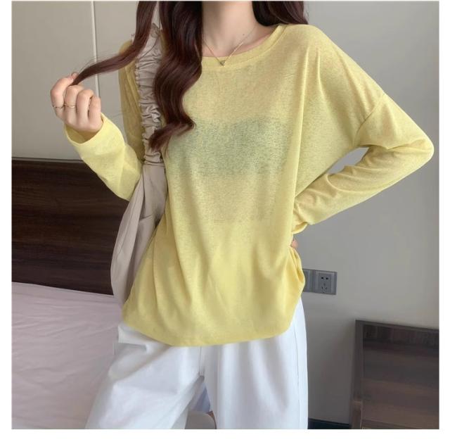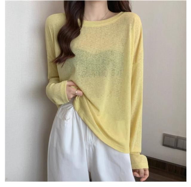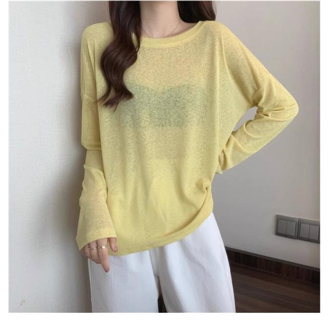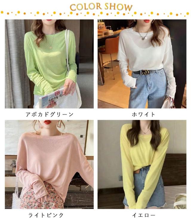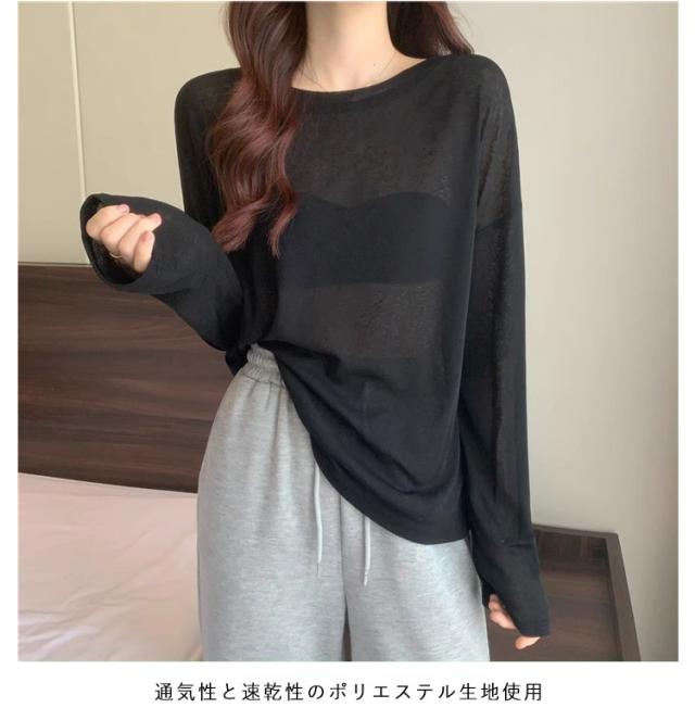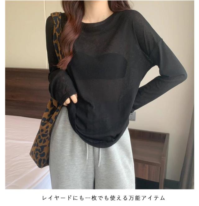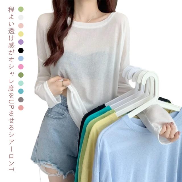 Uネック 日焼け対策 薄手 透け感 シアートップス 長袖tシャツ tシャツ シアートップス シアー 重ね着 春 夏 紫外線対策 長袖 ロンT ゆったり 体型カバー トップス 無地 シンプル フリーサイズ 可愛い おしゃれ