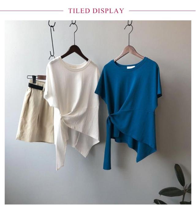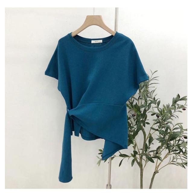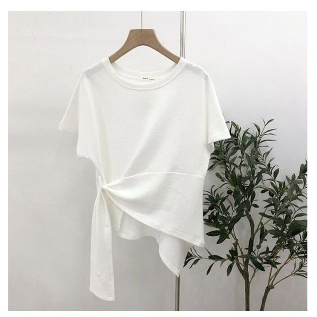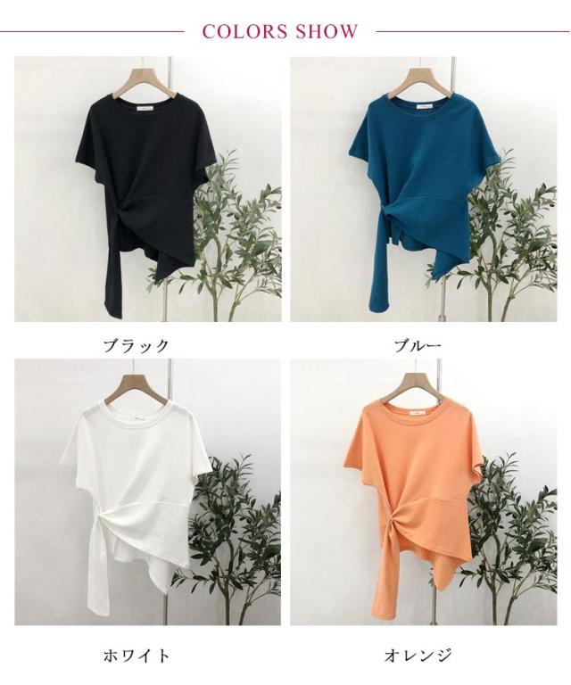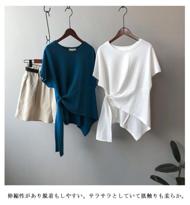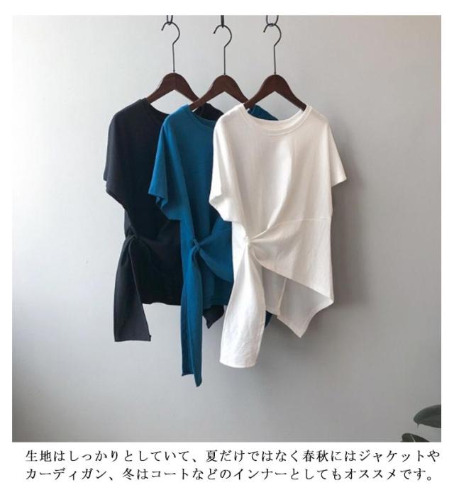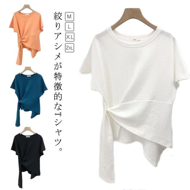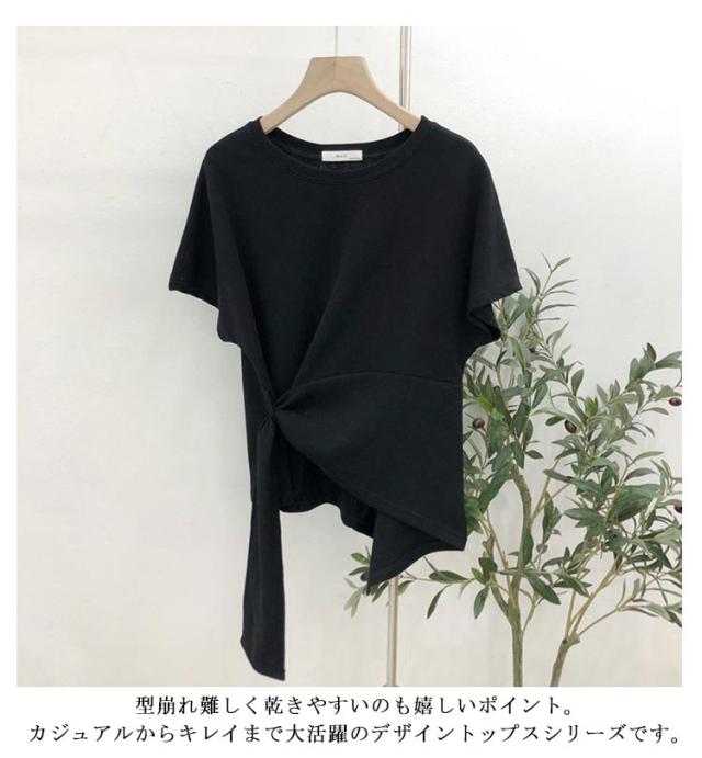 春 トップス Aライン 夏 カットソー 変形 レディース レディース 半袖 アシンメトリー デザイン スリット プルオーバー Uネック ラウンドネック おしゃれ カジュアル きれいめ カジュアル シンプル Tシャツ