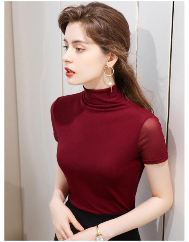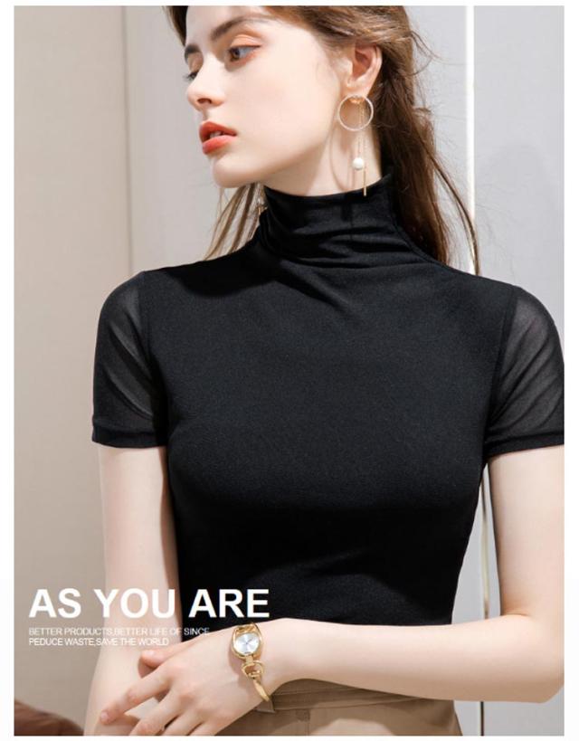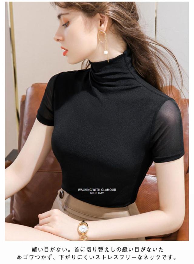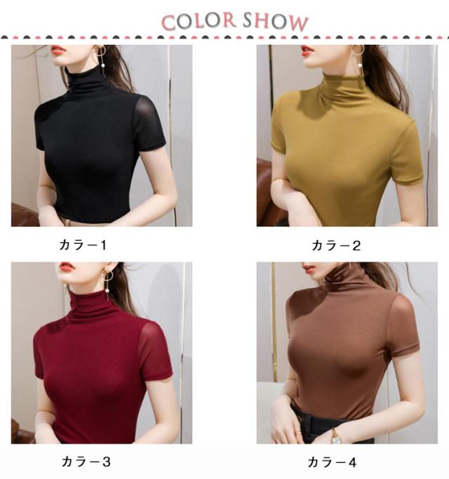 半袖 半袖 半袖tシャツ メッシュ袖 Tシャツ カットソー レディース タートルネック 大きいサイズ メッシュ素材 無地 全12色 ハイネックtシャツ 春夏 重ね着 フィット ハイネック レイヤード スリム メッシュ袖 M トップス S 半袖 L XL 2XL