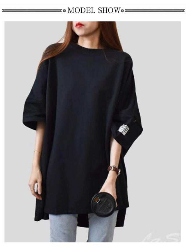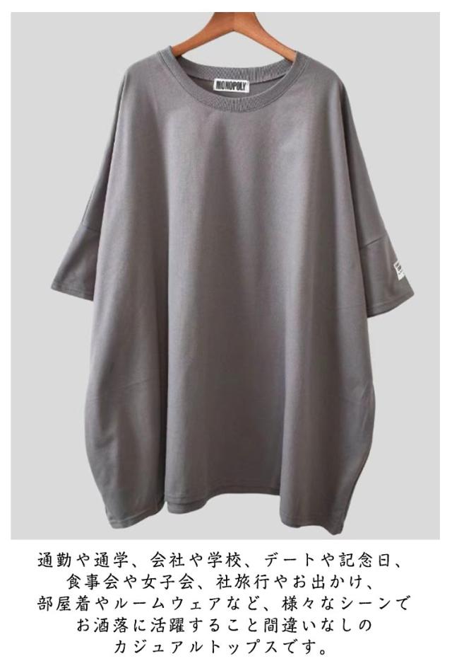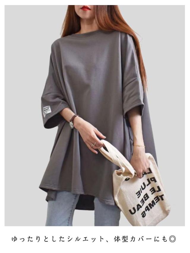 着?せ ゆったり 半袖 カジュアル 半袖tシャツ レディース 無地 ビッグシルエット tシャツ ロンT ロングtシャツ シンプル プルオーバー 五分袖 トップス 体型カバー 半袖tシャツ Tシャツ 夏服 フリーサイズ ゆったり 大人 女性 カジュアル おしゃれ リラックスウエア