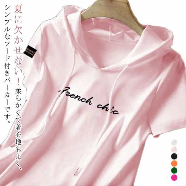 レディース 半袖 tシャツ カットソー 送料無料 パーカー 夏 プルオーバー フード付きtシャツ 薄手 春 パーカー フーディー Tシャツ プリント 送料無料 ロゴ フード テーシャツ シンプル 大きいサイズ