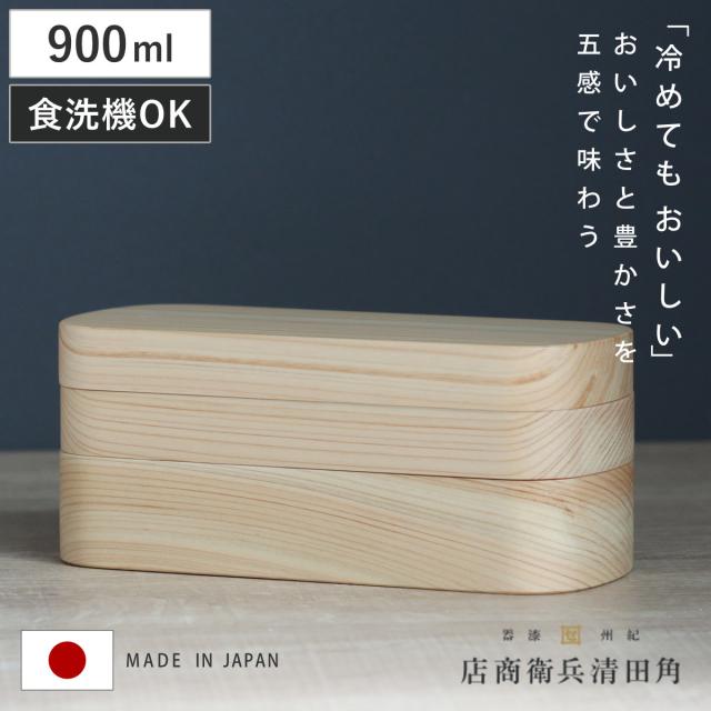 くり抜き弁当箱 2段 900ml 紀州桧弁当箱 type 42 ナチュラル ( 弁当 食洗機対応 天然木 紀州桧 二段 おしゃれ 仕切り付き 日本製 食洗機OK お弁当 木 木製 くりぬき ランチボックス シンプル 和風 お弁当箱 弁当箱 )