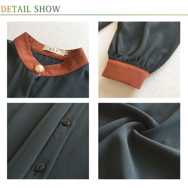 シフォンシャツ レディース スタンドカラー ブラウス 長袖 トップス スーツ インナー 長袖ブラウス バルーン袖 オフィス フォーマルブラウス 大きいサイズ バイカラー 切り替え M L XL 2XL 3XL 4XL
