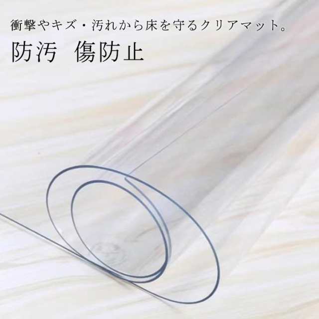 | 衝撃やキズ・汚れから床を守るクリアマット。 子どものいるご家庭には安心な素材です。 汚れがつきにくく撥水性に優れているPVC素材を使用します。 水や調味料、油がこぼれた際にもタオルなどでサッと拭き取れ、キレイに保つことができます。 難燃性素材で燃えにくく万が一着火した場合も、燃え広がることがなく安心。 耐熱加工を施しているため、床暖房にも対応しております。 透明なので、景観を阻害せずにインテリアにもしっかり馴染みます。 用途や場所を選ばず、様々なシーンで活躍します。 | |