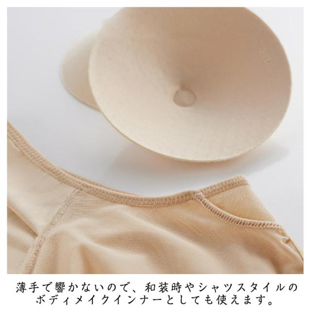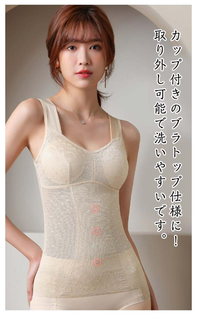 | 総レース仕様で見た目にもこだわりを持たせた補正下着です。 後ろ姿がすっきりして、気になる背中から見られたい背中に! ノンワイヤーなのでバストの締め付けが無く、気になるバストやお腹のプロポーションを整えてくれます。 伸縮性の良い生地が体の動きにぴったりフィット、抜群のストレッチ効果で苦しくないのにしっかり補整。 カップ付きのブラトップ仕様に!取り外し可能で洗いやすいです。 薄手で響かないので、和装時やシャツスタイルのボディメイクインナーとしても使えます。 | |