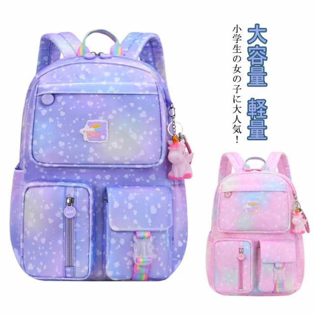スクールリュック 女の子 リュックサック キッズ キッズリュックサック 子どもリュックサック リュック ユニコーンチャーム付き 子供用 スクールリュック アウトドア かわいい 女子 小学生 子供 大容量 軽量 可愛い 丈夫 通学 おしゃれ 遠足 旅行 丈夫 通気性