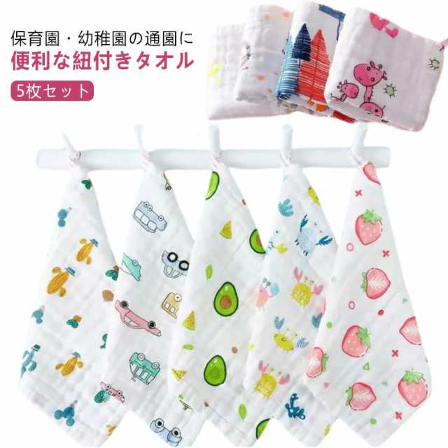 ループタオル 5枚セット 子供タオル ハンカチ ハンドタオル ループ付き タオル 手拭き よだれ拭き 保育園 幼稚園 新入園 新入学 ベビーハンカチ 吸水 速乾 布巾 出産祝い 口拭き 手拭き ベビーギフト 新生児 タオル 25x25cm 30x30cm 50x25cm 出産準備