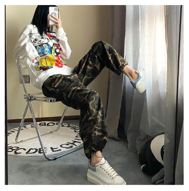 大きいサイズ ダンスパンツ カーゴパンツ レディース カモフラ柄 パンツ ダンス衣装 迷彩 ミリタリーパンツ 作業着 カジュアル ジョガーパンツ HIPHOP ヒップホップ ワイドパンツ ゆったり ストリート 原宿系 BF カーゴパンツ 韓国ファッション かっこいい 長ズボン