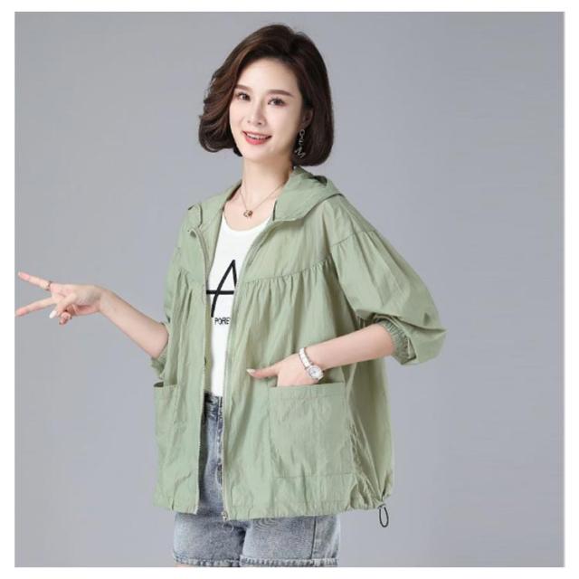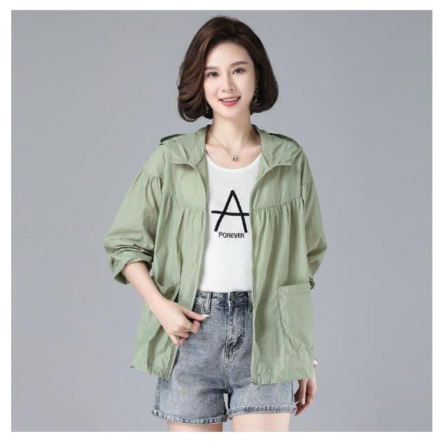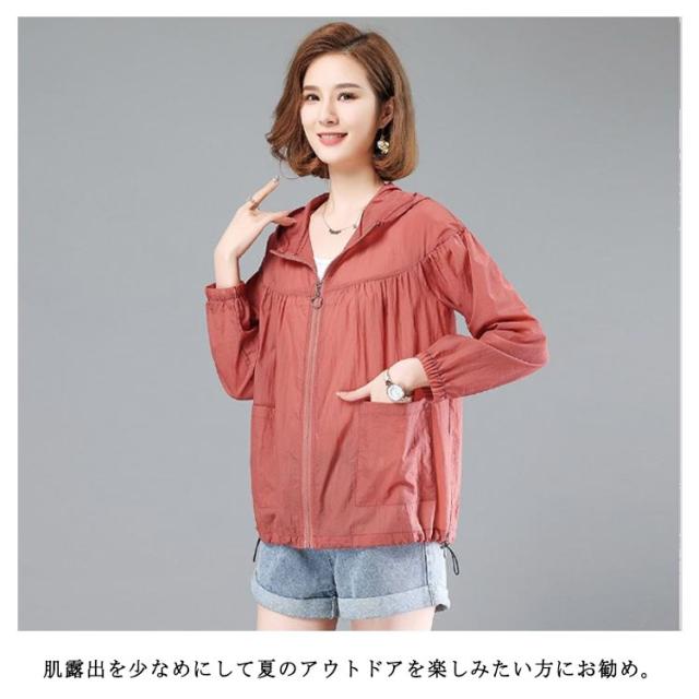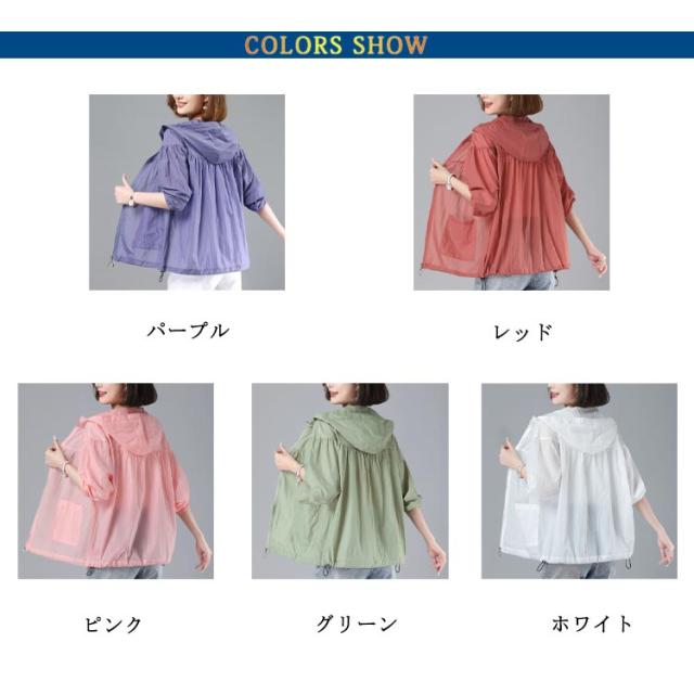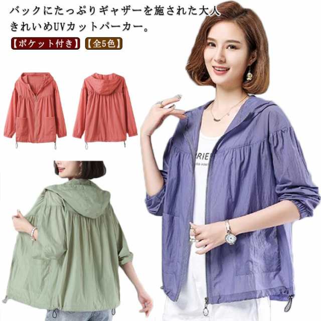 | バックにたっぷりギャザーを施された大人きれいめUVカットパーカー。【ポケット付き】【全5色】 シャカシャカとした生地感が軽やかで快適な1枚。 気軽に羽織りやすく、日除け対策や冷房対策にも活躍。 肌露出を少なめにして夏のアウトドアを楽しみたい方にお勧め。 たためばコンパクトなサイズになるので、鞄の中に入れて持ち運びもしやすい 両サイドにはポケット付きで、小物入れにも便利。 春夏のUV対策や肌寒い時にさっと羽織りやすいライトアウターです | |