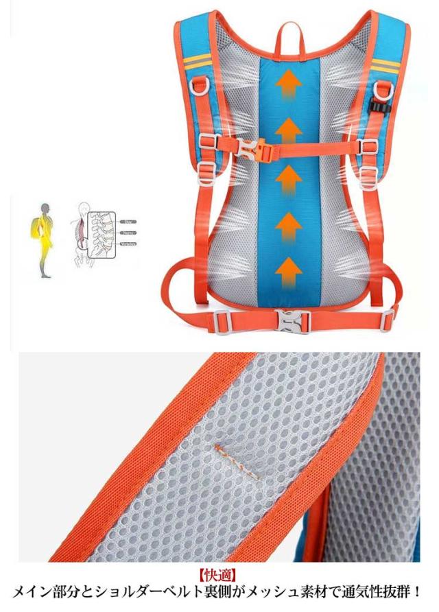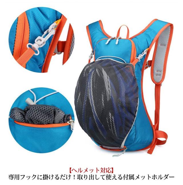 | 撥水、超軽量で自転車?ランニング?ジョギング?マラソンなどあらゆるスポーツに対応リュック! 【軽い】0.33kgと超軽量 【丈夫】摩擦に強く水や汚れに強いナイロン素材 【フィット感抜群】・肩・胸・腰が調整可能。チェストベルトは高さも調整できる 【夜間】視認性を高める反射素材が前後にあり 【開閉ラクラク】スムーズなWファスナーでスムーズな開け閉め 【快適】メイン部分とショルダーベルト裏側がメッシュ素材で通気性抜群! 【給水対応】・8L程度のハイドレーションバッグに対応。内側からショルダーストラップにストローを通すことが可能。 【ヘルメット対応】専用フックに掛けるだけ!取り出して使える付属メットホルダー 【折り畳み可】コンパクトに折り畳めるので携帯性も高い | |