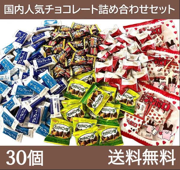 【30個】常温でのお届け 国内チョコレート詰め合わせ 30個セット ブラックサンダー アルフォート マカダミア アポロチョコ たけのこの里 ポイント消化