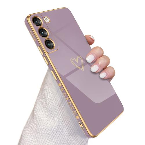 QLTYPRI Samsung Galaxy S22 5G ケース [ SC-51C | SCG13 ]ケース かわいい メッキラブハートソフト TPU カバー 女性 人気 軽量 スマホケース レンズ保護 落下防止 カバー Qi ワイヤレス充電対応 ケースギャラクシーS22用カバー - パープル