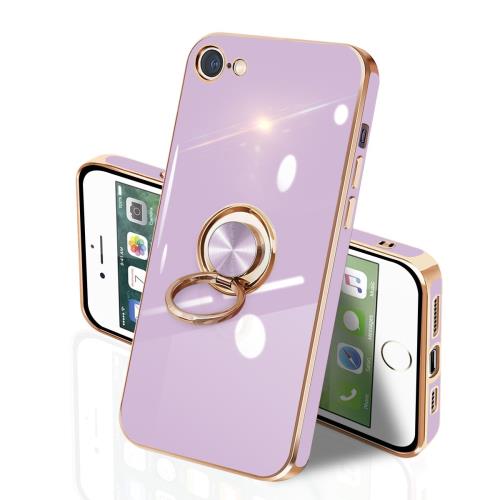 iPhone SE2 SE3 iPhone7 / 8 第3世代 第2世代 ケース リング付き イフォンSE3 リング TPU カバー 全面保護 耐衝撃 スマホケース iPhone SE2 360°回転 スタンド機能 携帯カバー 車載ホルダー対応 ストラップホール付き メッキ加工 擦り傷防止 4.7インチ(パープル)