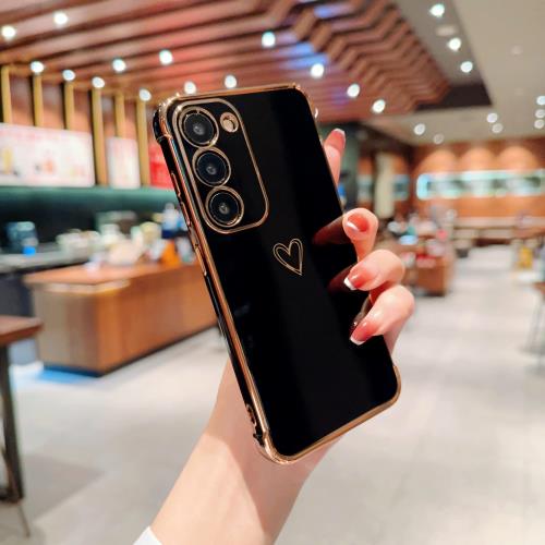 QLTYPRI Samsung Galaxy S22 5G ケース [ SC-51C | SCG13 ]ケース かわいい メッキラブハートソフト TPU カバー 女性 人気 軽量 スマホケース レンズ保護 落下防止 カバー ワイヤレス充電対応 ストラップホール付き ギャラクシーS22用カバー - ブラック