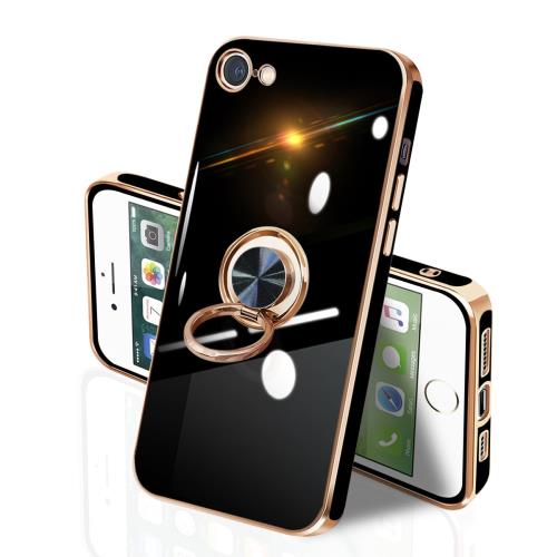 iPhone SE2 SE3 iPhone7 / 8 第3世代 第2世代 ケース リング付き イフォンSE3 リング TPU カバー 全面保護 耐衝撃 スマホケース iPhone SE2 360°回転 スタンド機能 携帯カバー 車載ホルダー対応 ストラップホール付き メッキ加工 擦り傷防止 4.7インチ(ブラック)