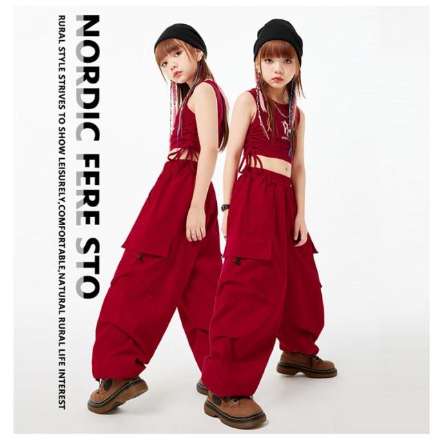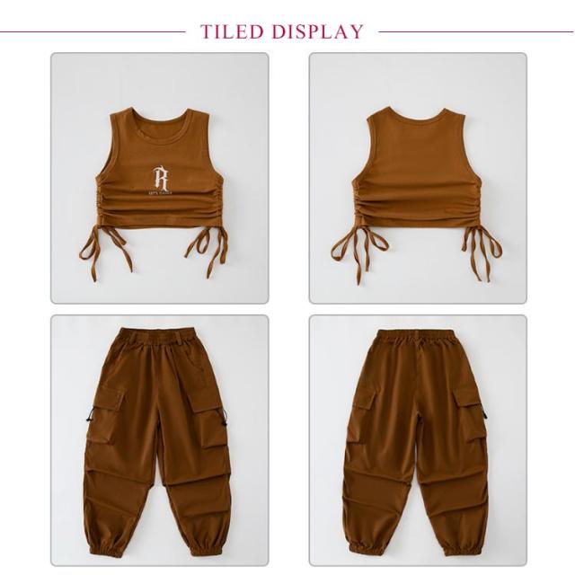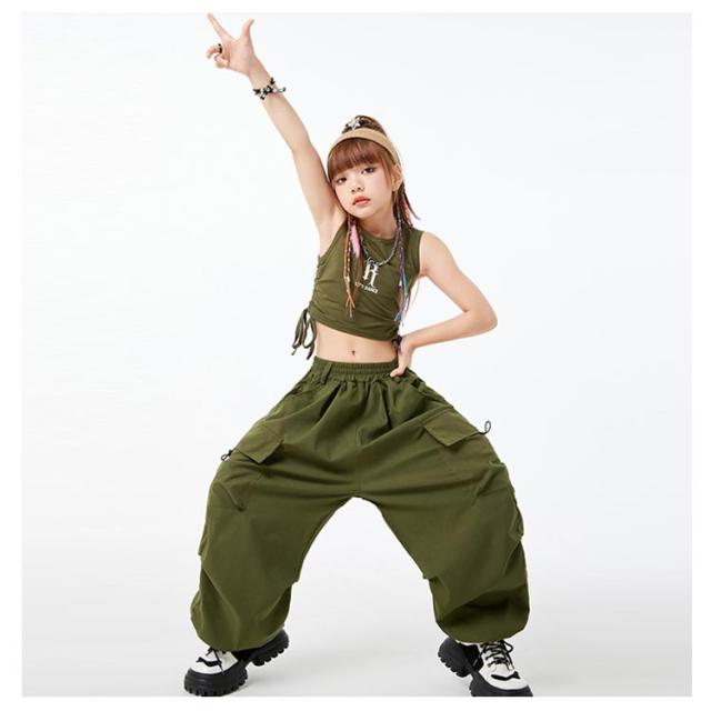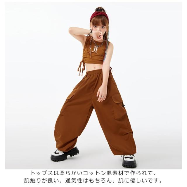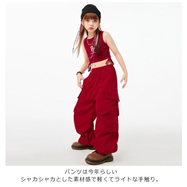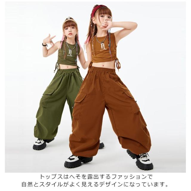 ノースリーブ ダンス衣装 キッズ hiphop キッズ トップス へそ出し 女の子 韓国 カーゴパンツ ダンスウェア セットアップ ヒップホップ 上下セット ジャズダンス ジュニア ガールズ 子供 練習着 団体服 応援団 jazz 大きいサイズ