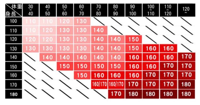 | サイズについての説明 | 110 120 130 140 150 160 170 180 |