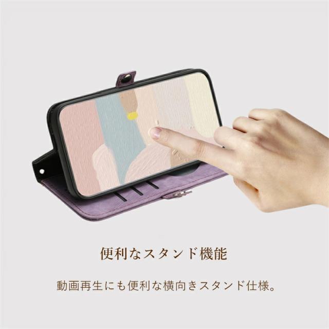・優しいカラーバリエーションと滑らかな手触りが特徴の手帳型ケースです。