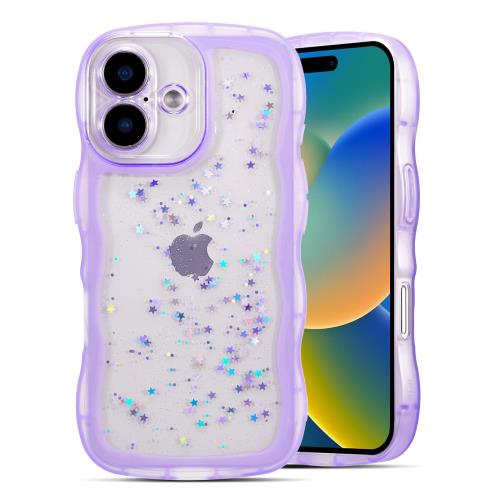 QLTYPRI iPhone 16 用 ケース クリア TPU カバー ウェーブ おしゃれ 韓国 可愛い グリッター 透明 軽量 耐衝撃 滑り止め スマホケース ワイヤレス充電対応 ストラップホール付き アイフォン16 用 ケース 6.1インチ 対応 - パープル