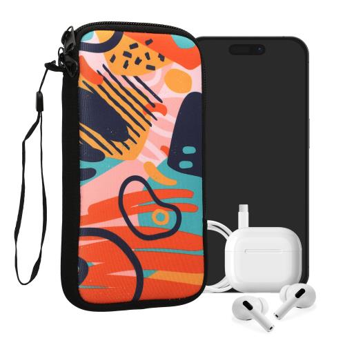 kwmobile スマホ 保護ケース XL - 6.7/6.8対応 - ネオプレン クッション カバー - 内寸法 カラフルパターンデザイン 紺色/オレンジ/アンティークピンク 17.2 x 8.4 cm 対応