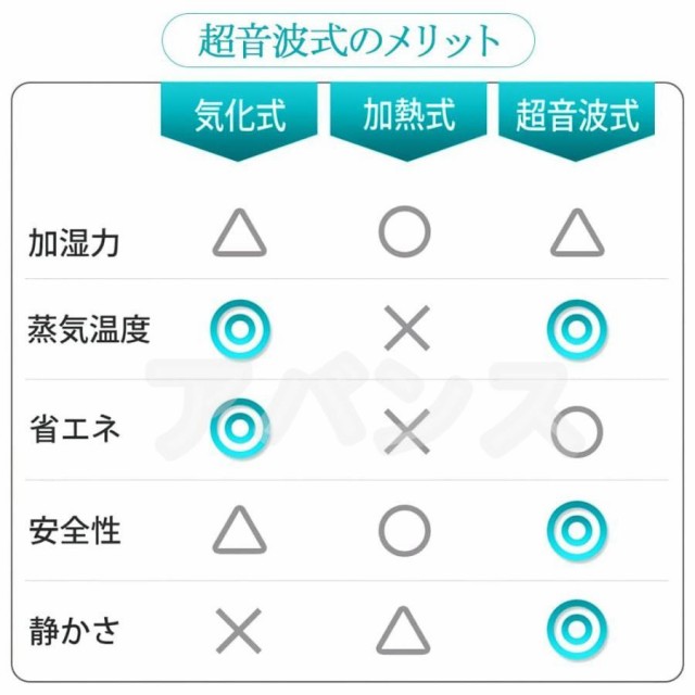 高品質の静音仕様超音波クールスチーム技術により、動作音36dbより小さく抑えられています。睡眠、生活や仕事に妨げることがありません。上から注水タイプで楽に注水できます。操作はツマミ1つで簡単です。便利なポータブル式で加湿器のお手入れも非常に便利で