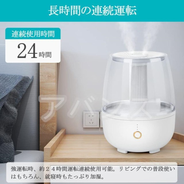 この大容量の卓上加湿器は最大24時間の連続作動可能で。ヨガ、ジム、リビング、ベッドサイド、子供の部屋に最適な加湿器です。