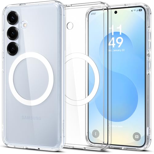 Spigen 創業18年の技術力 Galaxy S25 ケース クリア MagSafe対応 耐衝撃 ストラップホール 黄変防止 バンパー 米軍MIL規格 ウルトラ・ハイブリッド・マグフィット ACS09002 (クリア・ホワイト)