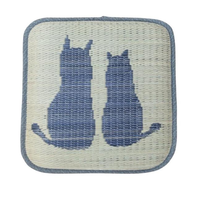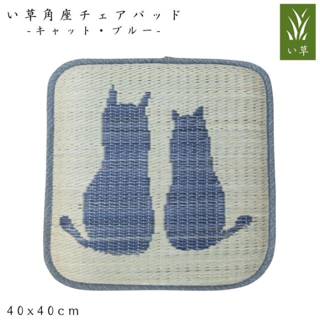い草チェアパッド角座 キャット ブルー