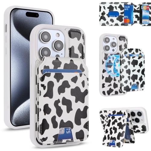 Cavor iPhone 15 Pro 手帳型ケース iPhone 15 Proスマホケース iPhone 15 Pro 分離型手帳 ケース iPhone 15 Pro 手帳型 二合一 MageSafe MageSafe 対応 スマホケース 可分離iPhone15 Pro 財布型 カバー MageSafe wallet 両用 2way 内蔵マグネット横置乳牛柄黒ヒョウ柄ン