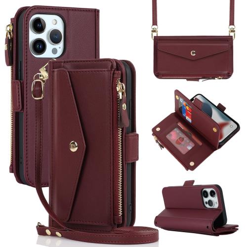 アイフォン iPhone 13 スマホケース 手帳型 アイフォン 14 お財布型 iphone 14 携帯ケース iphone 13 スマホケース iphone 14 おしゃれ 肩掛け 首かけ 斜めがけ ステント機能 カード収納 小銭入れ-ワインレッド