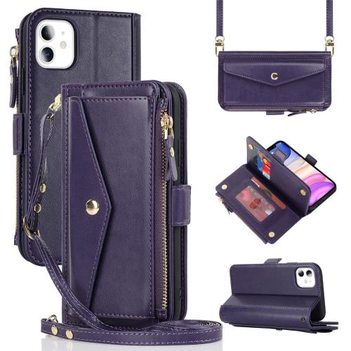 iPhone 12 スマホケース 手帳型 アイフォン 12 pro お財布型 iphone 12 pro 携帯ケース iphone 12 スマホケース iphone 12 pro おしゃれ 肩掛け 首かけ 斜めがけ ステント機能 カード収納 小銭入れ-パープル