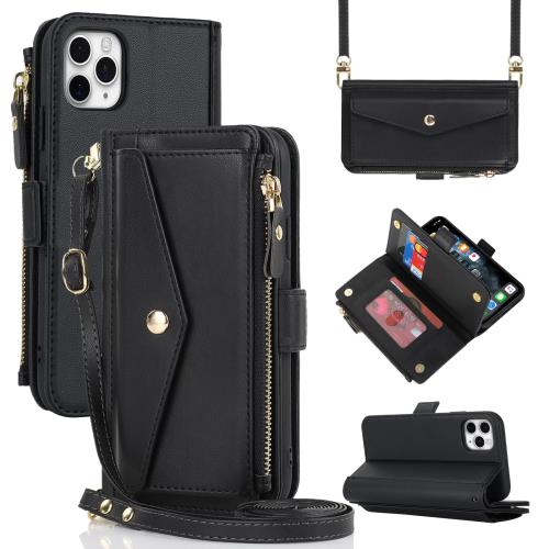 iPhone 11 Pro Max スマホケース 手帳型 アイフォン 11 Pro Max お財布型 携帯ケース iphone 11 Pro Maxおしゃれ 肩掛け 首かけ 斜めがけ ステント機能 カード収納 小銭入れ-ブラック