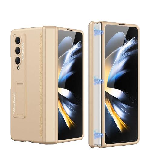 Galaxy Z Fold4 ケース ガラスフィルム付き Samsung ギャラクシーZ フォールド4 5G 用 カバー Uovon スマホケース 薄型 ヒンジ保護 軽量 スタンド付き 全面保護 カメラレンズ保護 おしゃれ 人気 ストラップ穴付き ・ ゴールド