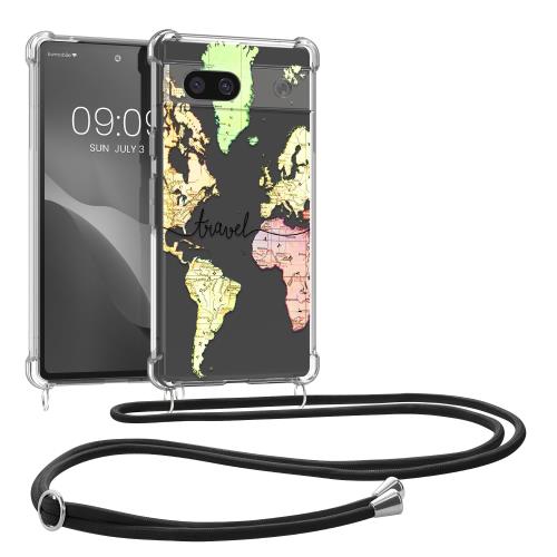 kwmobile スマホショルダー Google Pixel 7a対応 ケース - ショルダー クリア TPU カバー ストラップ付き - 肩掛け 首掛け 耐衝撃
