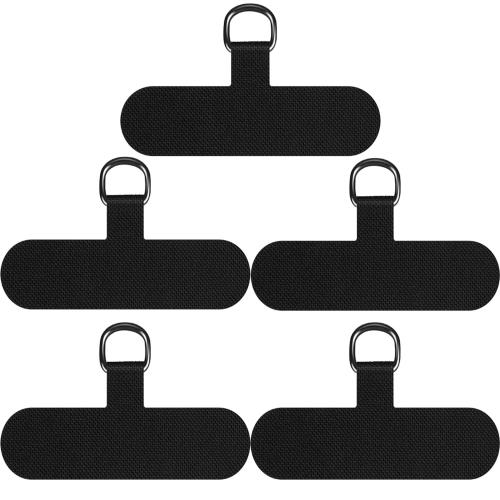 [OJBSEN] 5枚 ストラップホルダー スマホ ストラップホルダー タグパッチ+金属リング ネックストラップホルダー スマホアクセサリー 外付けストラップホール ストラップと合わせて 充電影響なし 紛失 落下 盗難防止 全機種対応 T字型 (ブラック)