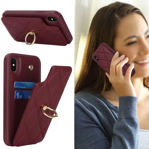 Cavor iPhone XS iPhone X 手帳型ケース 背面ポケット付き iPhoneX 財布型 ケース iPhone XS手帳型ケースアイホンXS スマホケースカードポケット上下開iPhoneXS 携帯ケースiPhone10 case カード収納 360°回転リング 可愛 免許証と 横置 Qi急速充電対応 磁気機能 落下防止- ワインレッド