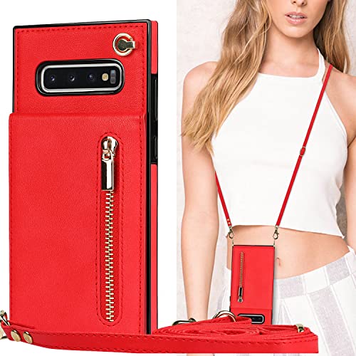 Galaxy S10 SC-03L SCV41 対応 スマホ ケース galaxy s10スマホ 携帯 用 ケース galaxy s10 sc-03lケース 肩掛け 首かけ 斜めがけ ショルダー ギャラクシー S10 財布型 ケース galaxys10 スマホケース Galaxy S10 TPU ケース galaxy sc03l ケースgalaxya41スマホケース Galaxy S10 手帳型ケース上下開 Cavor Galaxy S10 携帯 カバー ステント機能 片手操作 PU皮革 TPUパイピング 減圧ショック 指紋防止 落下防止 Qi ワイヤレス充電対応 薄型軽量 耐久性 取り外し可能 落下保護 レッド